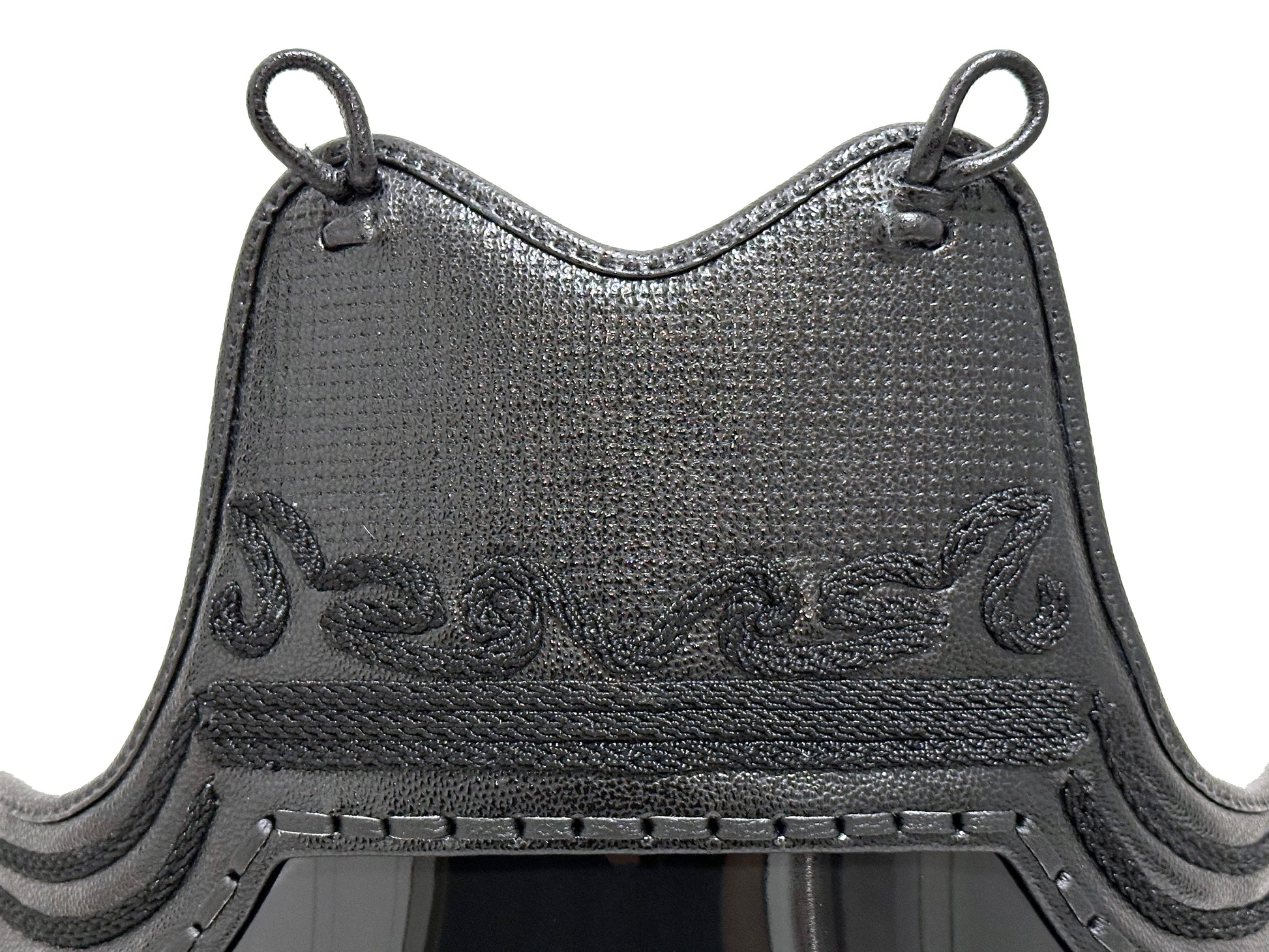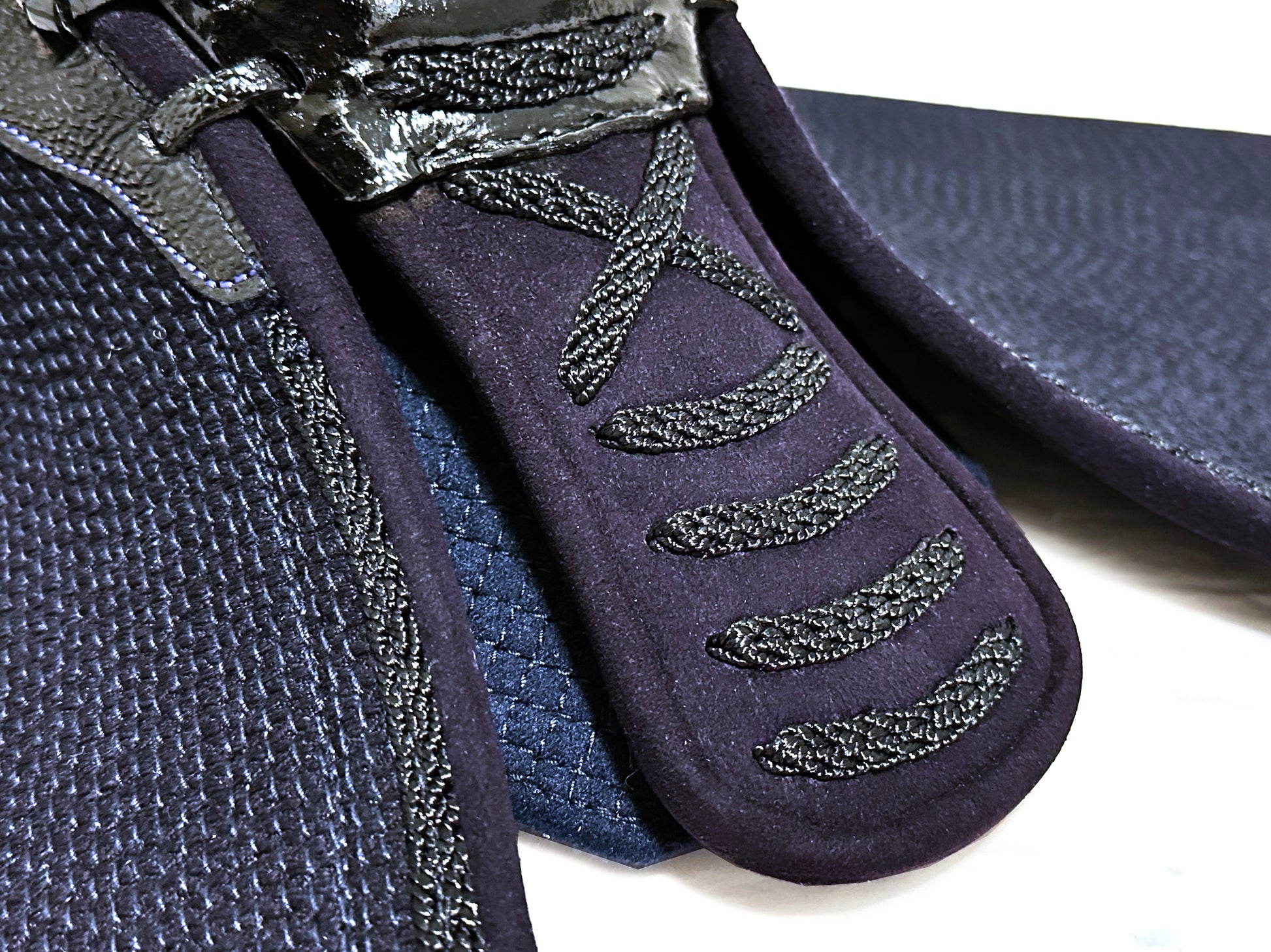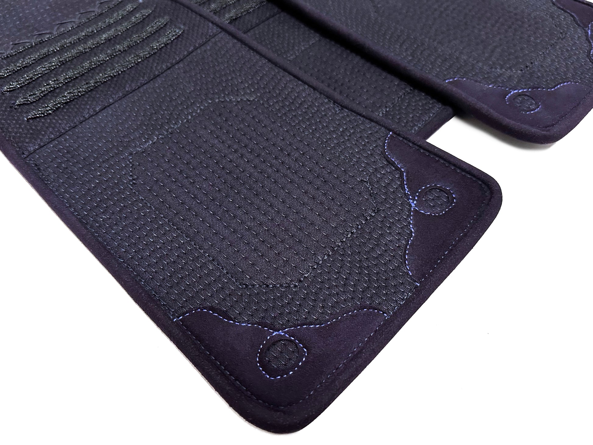 This 6mm Orizashi Bogu set features durable synthetic leather in areas subject to the most wear and tear, such as the Herikawa and Ago. Both the Mendare and O-Dare (larger Tare panels) feature Gunomezashi - an aesthetically pleasing method of stitching where an additional off-set row of stitches (3mm) is inserted between the standard rows of stitching (6mm). This gives the 3mm portions of the Futon more durability and rigidity - allowing the user to easily mold these areas to a desirable shape.