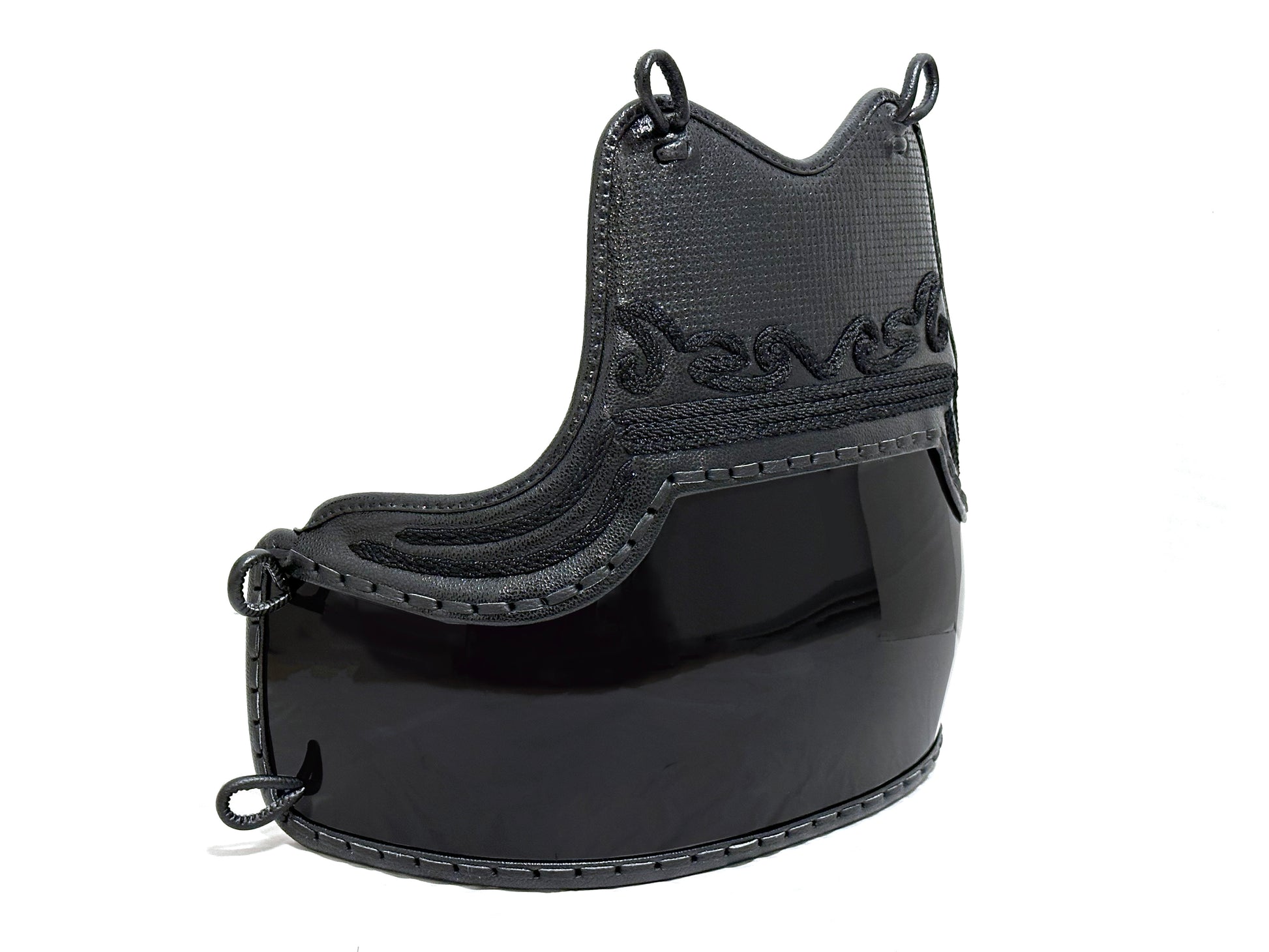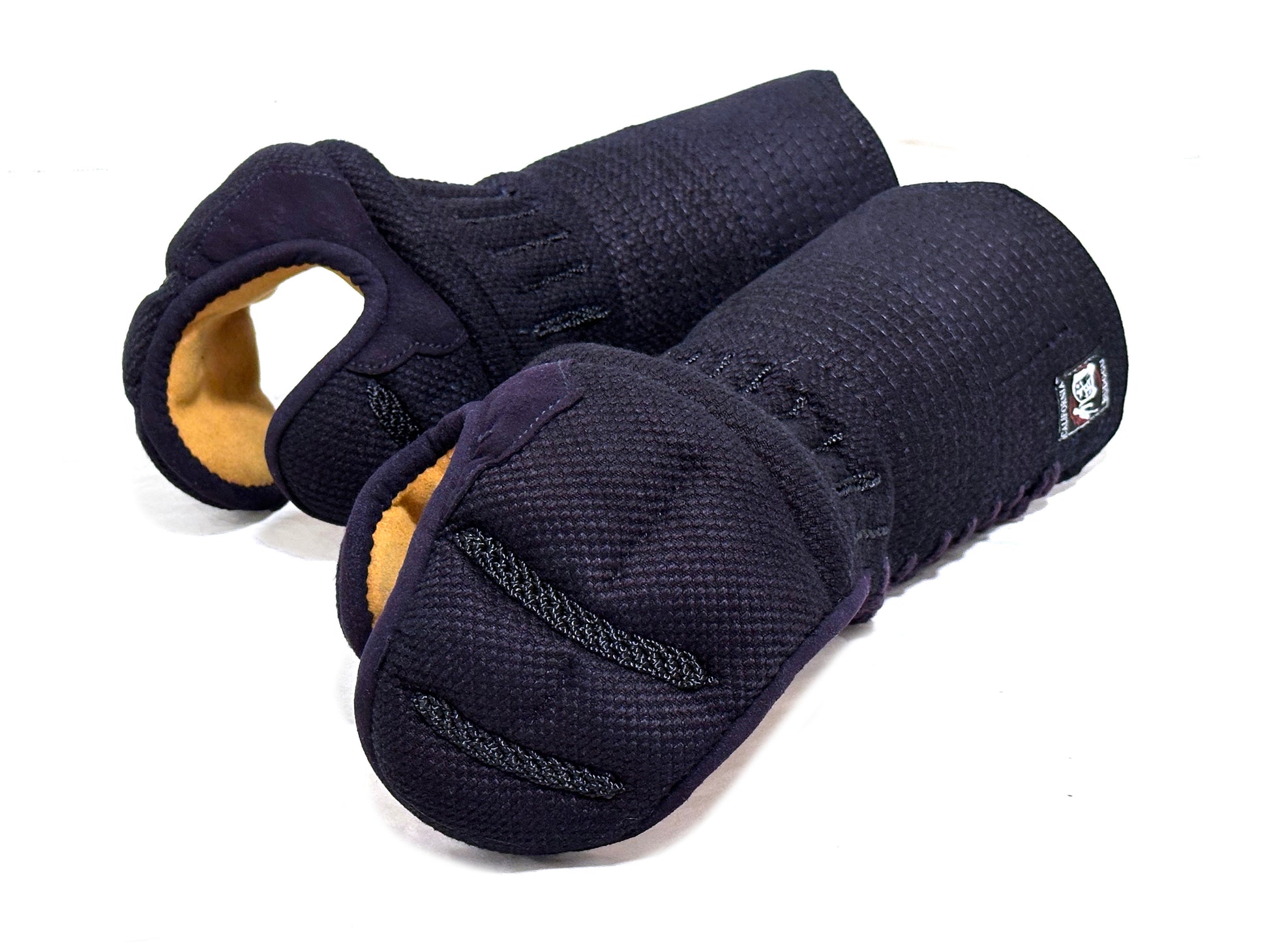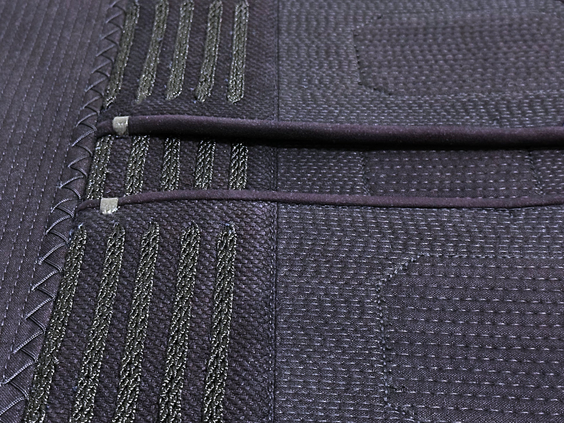This 6mm Orizashi Bogu set features durable synthetic leather in areas subject to the most wear and tear, such as the Herikawa and Ago. Both the Mendare and O-Dare (larger Tare panels) feature Gunomezashi - an aesthetically pleasing method of stitching where an additional off-set row of stitches (3mm) is inserted between the standard rows of stitching (6mm). This gives the 3mm portions of the Futon more durability and rigidity - allowing the user to easily mold these areas to a desirable shape.