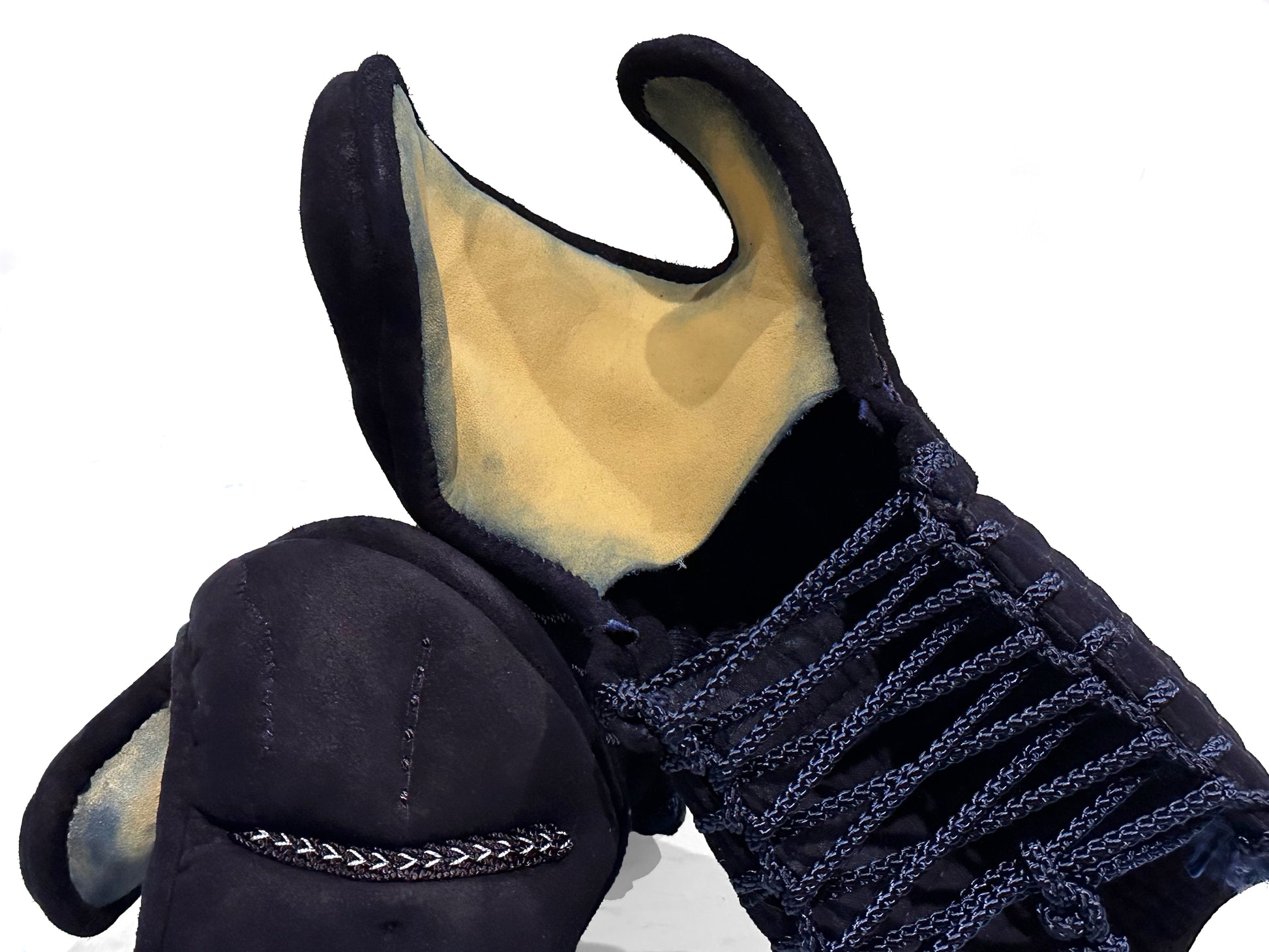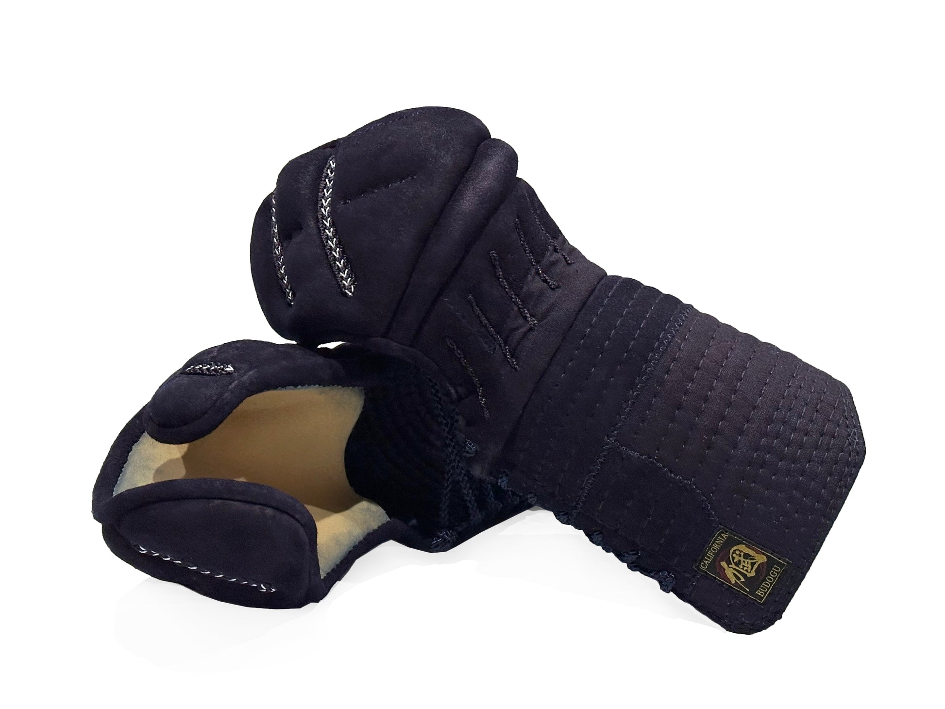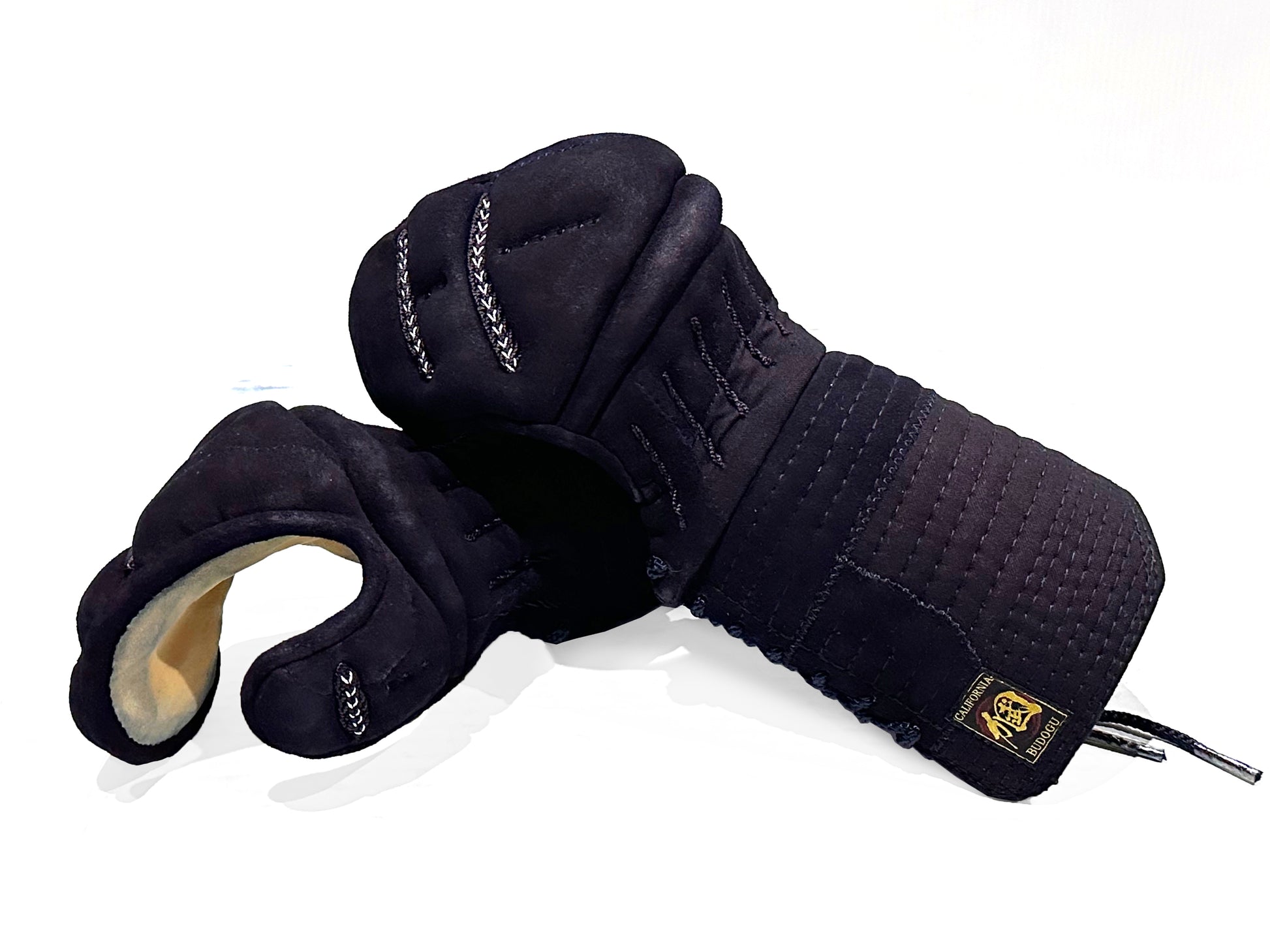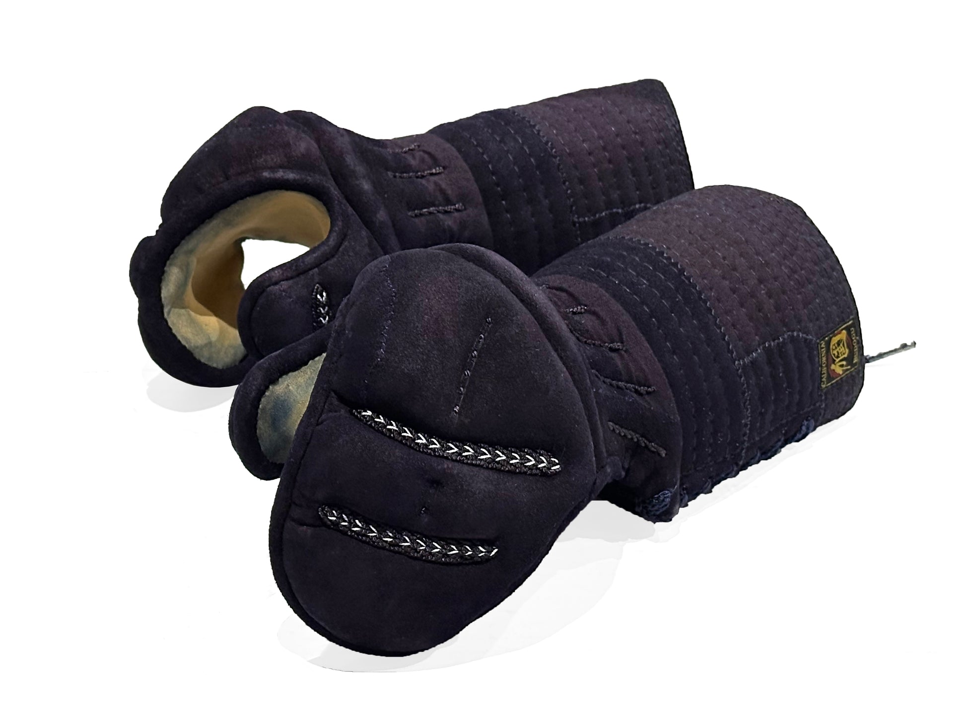 The full deerskin Kote are an enhanced version of our popular California Budogu SAPPHIRE Kote, designed with a thicker Futon for superior protection. Filled with premium deer hair, the Kote-Atama provide exceptional mobility and comfort with the ability to mold perfectly to the shape of your hands over time. To suit your preferences, we offer a choice of white Ultrasuede or half-smoked deerskin palms, ensuring a tailored feel for every Kendoka.