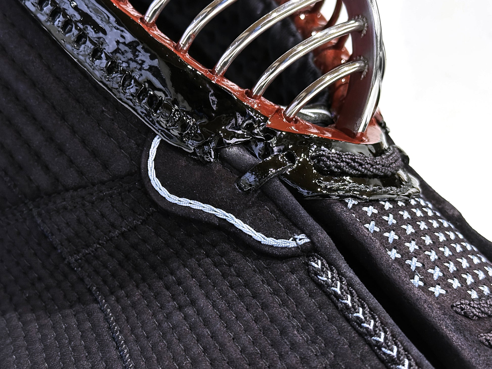 The understated Men showcases thick 10mm Gunomezashi stitching, paired with a wider Sashime pitch for enhanced cushioning and effortless shaping of a desired “Fuji” Mendare. Reflecting the craftsmanship of high-end Tezashi sets, the Menbuchi is meticulously assembled with 70 rows of Tojikawa stitching, offering superior durability and attention to detail. The Mengane, while slightly heavier, comes standard in Titanium, ensuring exceptional strength and a brilliant shine unmatched by Duralumin counterparts. This combination of durability and elegance makes the Men extremely protective, durable, and visually striking.