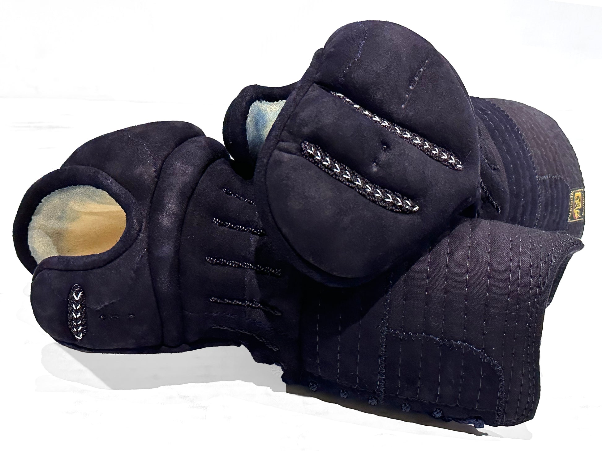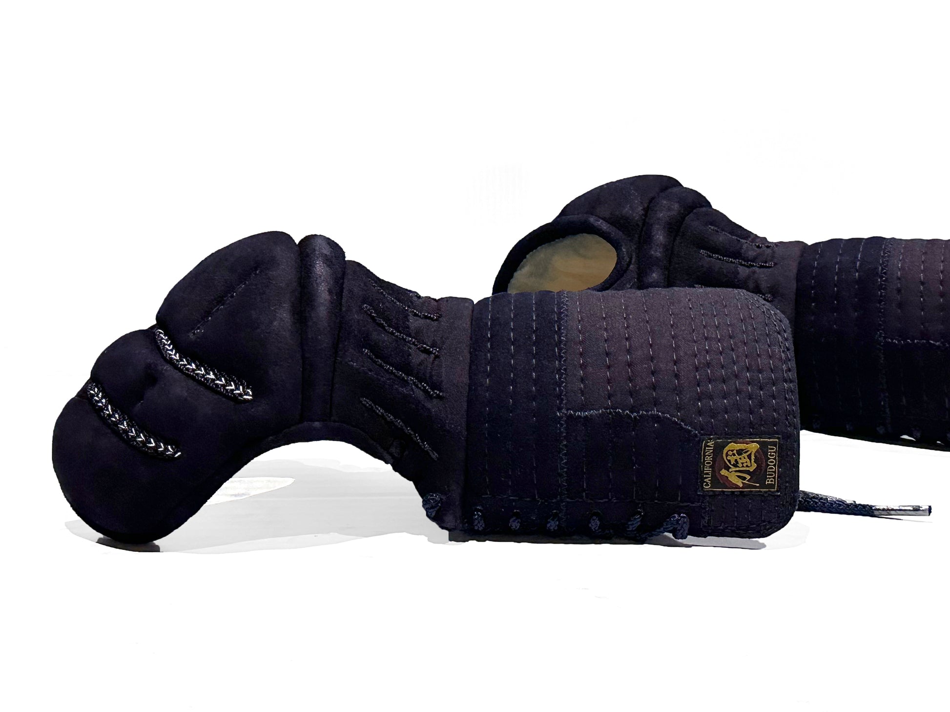 The full deerskin Kote are an enhanced version of our popular California Budogu SAPPHIRE Kote, designed with a thicker Futon for superior protection. Filled with premium deer hair, the Kote-Atama provide exceptional mobility and comfort with the ability to mold perfectly to the shape of your hands over time. To suit your preferences, we offer a choice of white Ultrasuede or half-smoked deerskin palms, ensuring a tailored feel for every Kendoka.