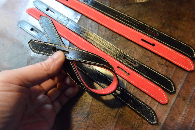 A set of leather and suede Chichikawa for attaching the Himo (strings) to the Men.