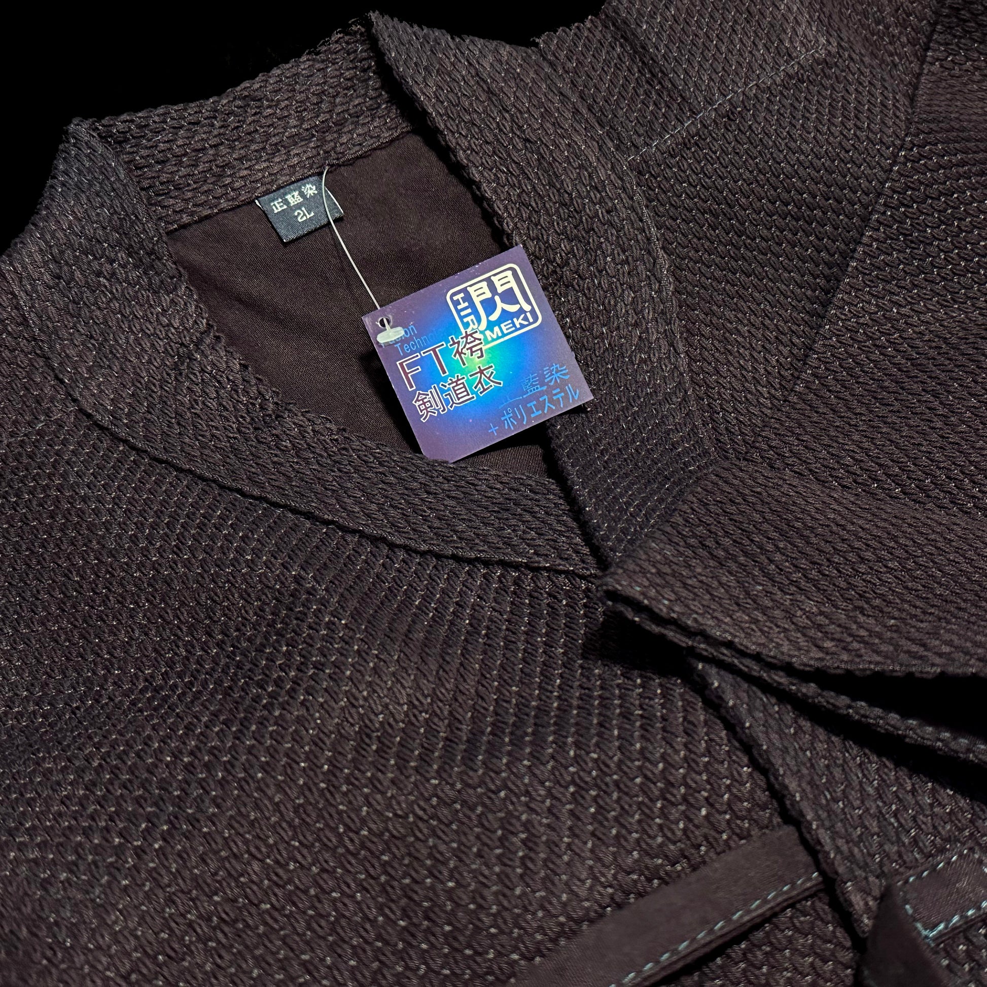 One of the first ‘hybrid’ uniforms on the market, the Hirameki FT synthesizes horizontal synthetic polyester with vertical Sho-Aizome cotton, resulting in a perfectly balanced, lightweight uniform. The luxuriously dark shade of Aizome blends perfectly with the indigo polyester, allowing the uniform to fade slower than its traditional Aizome counterparts, without the artificial look of standard synthetic Kendogi and Hakama.