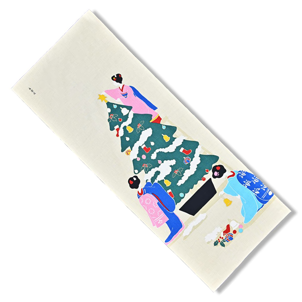 Celebrate the festive season with this beautiful and unique Made in Japan Tenugui, featuring Geishas decorating a Christmas tree! VERY Limited Quantity.