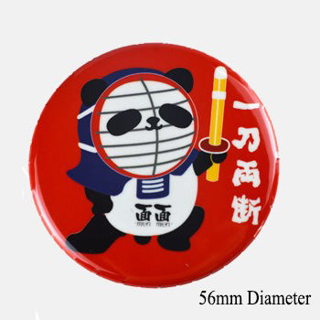 A pin badge featuring the original Kendo character - Men-Men the Panda!