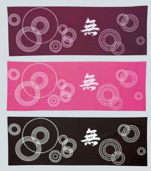 Tenugui with the Kanji for Mu, surrounded by water droplets. This Kanji, literally meaning "nothing" or "empty", is the same Mu in popular Budo phrases such as "Mushin".