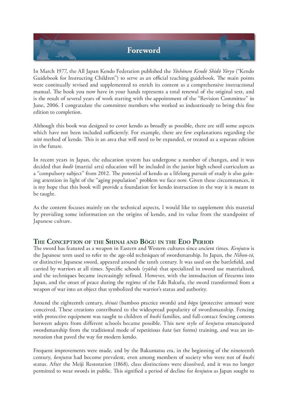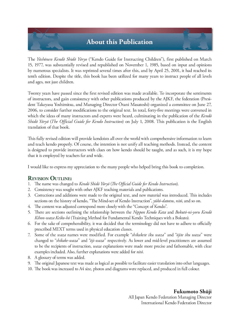 From the FIK (International Kendo Federation). This is an English version of "Kendo Teaching Guidelines (Kendo Shido Yoryo)" issued in July 2019.