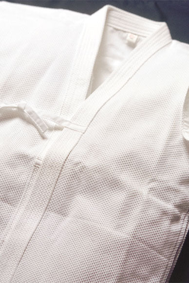 NEW JISSENGATA OPTION: A similar style single layer Kendogi with a finer Sashiko weave. The unique stitching in the Jissengata option allows air to flow freely into the fabric, giving the uniform optimal thickness for protection, while remaining both lighter and more breathable than a traditional single layer Kendogi!