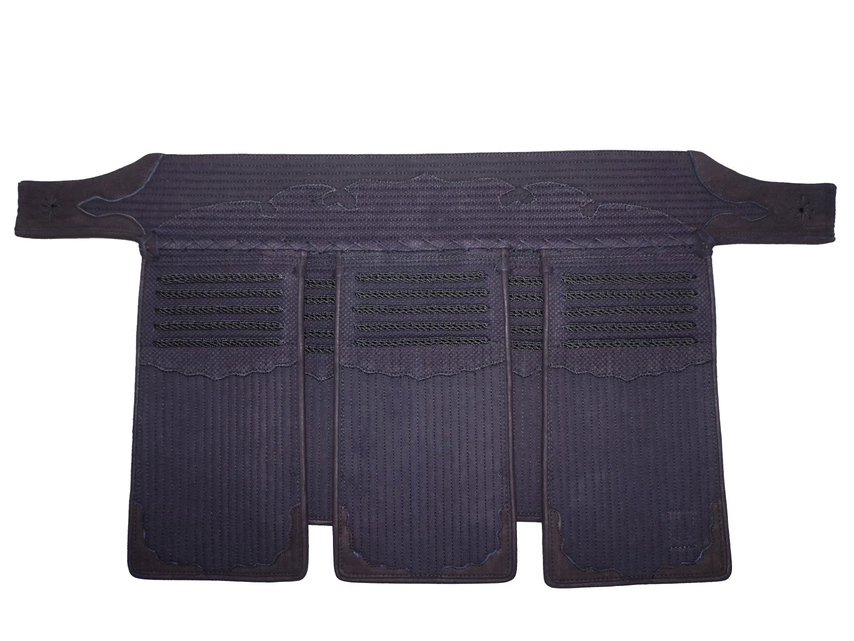 The Tare features deerskin not only on the Herikawa, but where the Obi connects to the Himo for increased durability. Finally, the top row of Kazari-Ito is lowered by approximately one centimeter, to reduce ware and tare over time from rubbing against the Do. The Orizashi version has the advantage of being flexible and quick-drying, making it suitable for those looking for a more lightweight Bogu set for everyday practice.