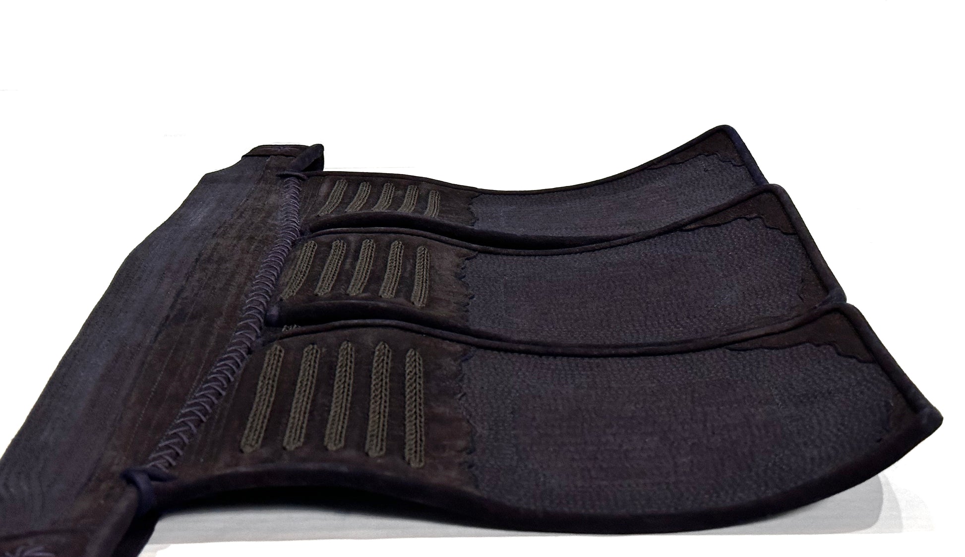 The Tare features a unique U-shaped cut, with the center O-Dare positioned slightly lower than the left and right O-Dare. This distinctive and aesthetically pleasing design provides exceptional mobility and comfort, conforming perfectly to the user's shape. Reinforced with ‘Aizome’ deerskin, the Tare boasts not only extreme durability but also refined elegance, making it ideal for long-term use. The top Kazari-Ito are lowered to minimize scratching from the Do, further enhancing the Tare's overall durability.