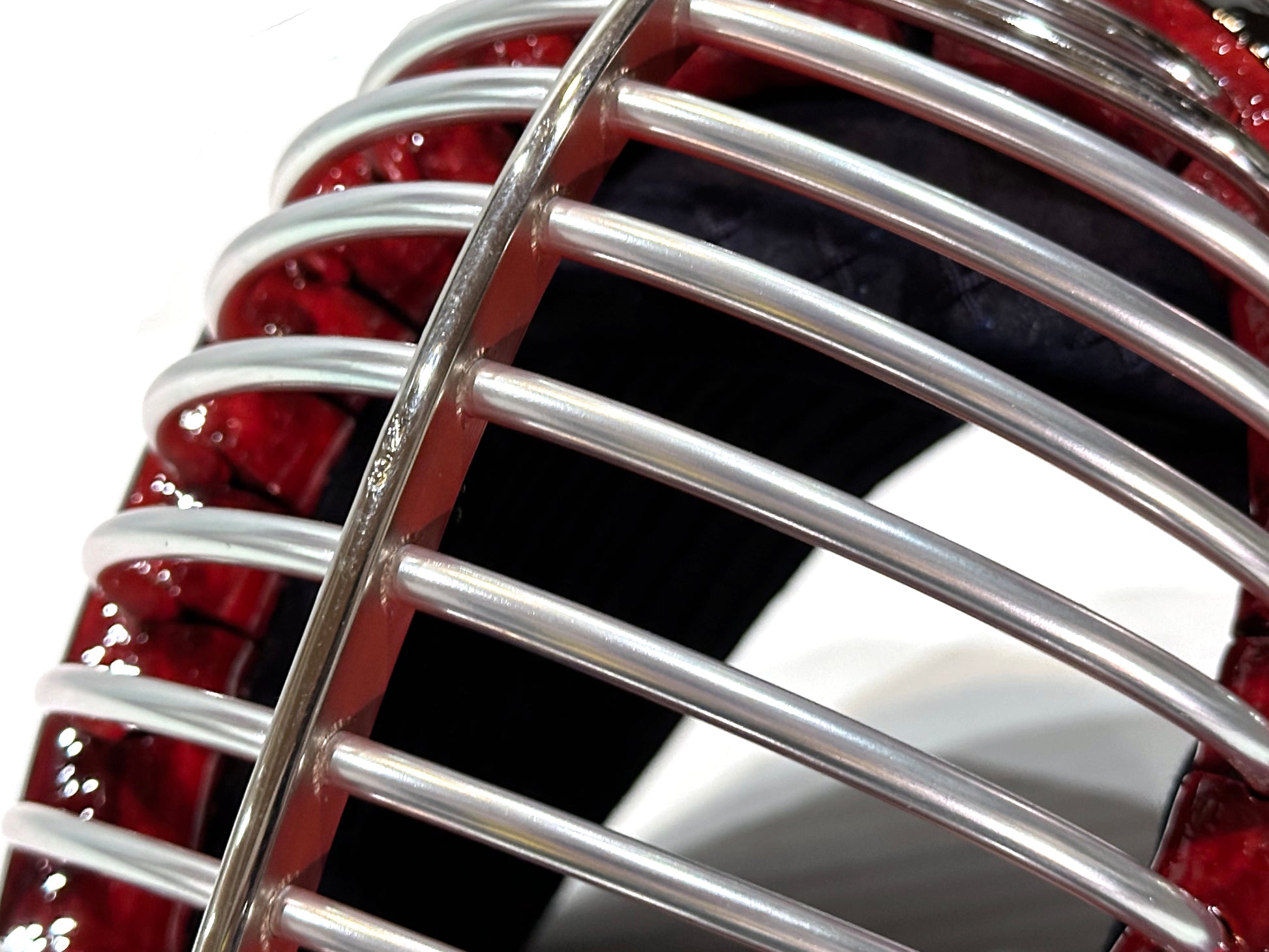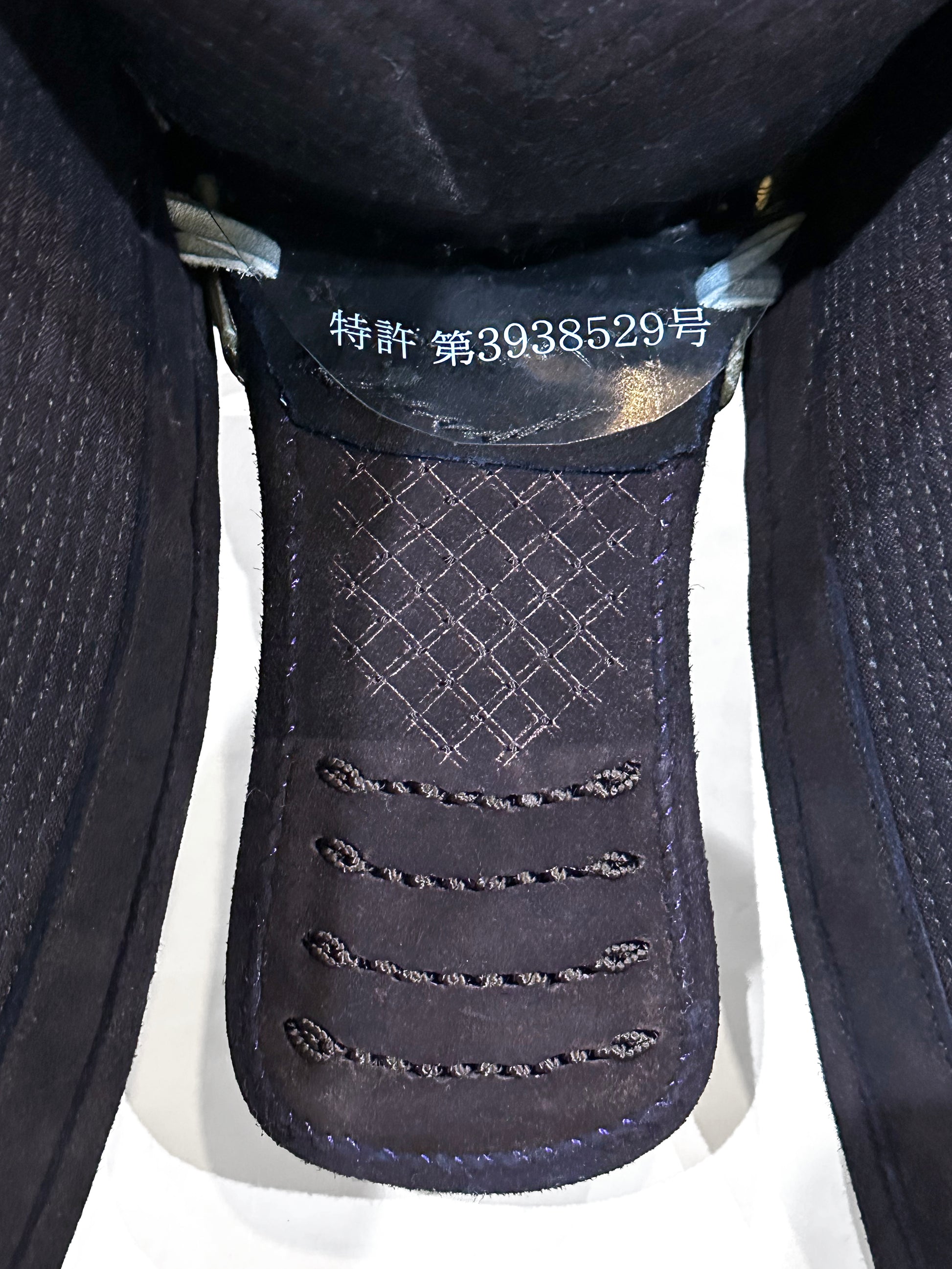 The Men features a straight Gunomezashi stitching pattern, alternating between 8mm along the top of the Men-buton and 4mm along the Mendare. This precise stitching complements the sharp cut of the Mendare and the straight Kazari-ito along the edge. The combination of this meticulous stitching and high-quality ‘Aizome’ deerskin reinforcements along the leading edge of the Mendare gives the KANMURI Men exceptional shapability and a commanding presence in both the Shiai-jou and Dojo—ideal for top-level Shiai-sha and high-ranking Senseis alike. Additionally, this Men is equipped with the highly sought-after IBB-N3 Mengane, utilizing a blend of Titanium, Duralumin, and Carbon Steel. This advanced Mengane optimizes balance while maintaining strength and lightness.