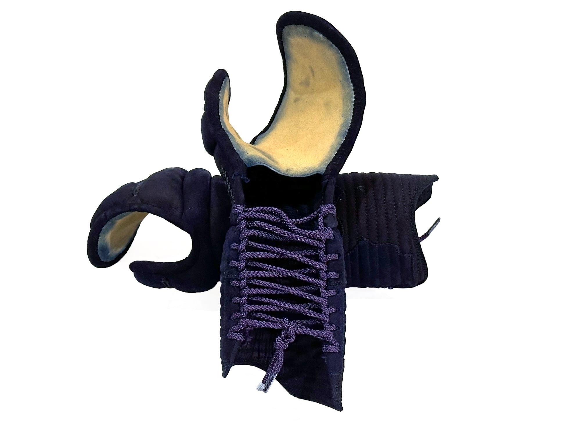 The KANMURI is fully reinforced using the finest cuts of genuine 'Aizome' dyed deerskin as standard. Utilizing only the highest quality materials, the pre-massaged Futon of the KANMURI is soft and flexible, durable, and extremely shapable. The KANMURI come ready for use out of the box with the same unique and elegant pre-shaped Mendare and Tare that have made this one of the most sought after Bogu sets in all of Japan. Despite not requiring extensive break-in time like many other Bogu sets, the high-quality, durable, and robust ‘Aizome’ deerskin evolves over time, aging beautifully in both appearance and texture as one uses it.