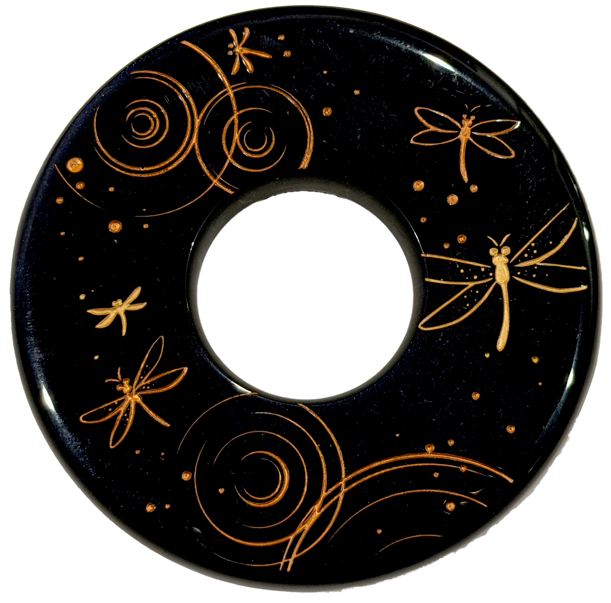 Made-in-Australia Resin Tsuba - Golden Dragonflies (Black)